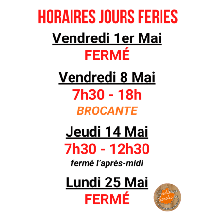 Samedi : 7h30 - 12h45 & 15h - 19h