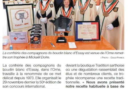 Il est important pour votre artisan boucher le Mans, d’avoir des produits de qualité, c’est pour cela que nous participons à des concours sur nos réalisations afin d’avoir l’obtention de médailles et donc de vous donner un gage de qualité supérieure sur nos produits. En 2019, nous avons eu le prix d’honneur du meilleur boudin blanc d’Alençon au championnat d’Europe, mais également le Grand Prix d’excellence de la meilleure saucisse grillée d’Alençon et pour finir, le prix d’honneur pour la saucisse de bœuf au piment d’Espelette. Nous avons renouvelé l’expérience en 2020, lors du Concours Général Agricole de Paris au Salon International de l’Agriculture avec la médaille d’or pour nos rillettes. Lors du Concours des meilleures rillettes pur Porc à Mamers nous avons reçu l’Accesit pour la catégorie Apprenti par Noa Davenne et nous avons également reçu l’Accesit au Concours des meilleures rillettes créative de Mamers.