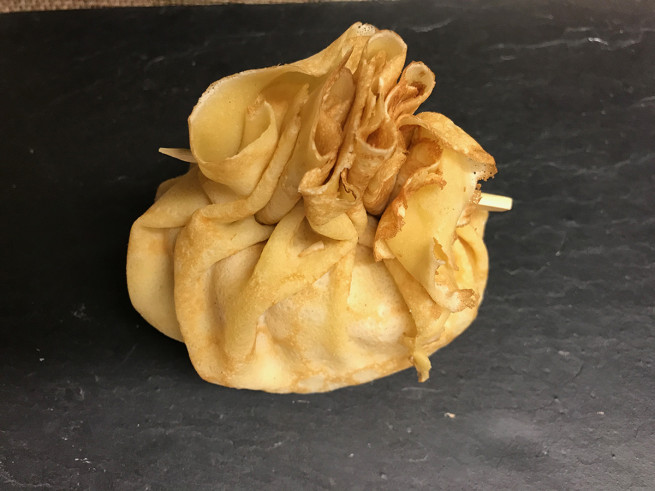 Ce plat met à l’honneur des produits d’une qualité rare, rigoureusement sélectionnés pour leur fraîcheur et leur origine. La noix de Saint-Jacques sauvage, pêchée dans les eaux froides du Groenland, se distingue par sa finesse et sa chair délicate. Elle est sublimée par une recette maison élaborée dans notre laboratoire, en respectant les savoir-faire artisanaux et en valorisant les produits locaux. L’aumônière offre une texture croustillante à l’extérieur et un cœur fondant et parfumé, révélant toute l’authenticité de notre cuisine.