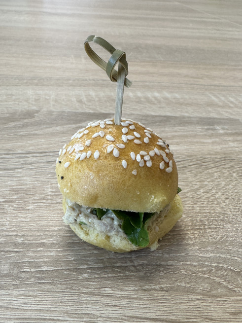 Le baby burger au thon est une petite bouchée apéritive à la fois savoureuse et raffinée, parfaite pour des moments de convivialité. Conçu par l’artisan traiteur Tradition Sarthoise, ce mini burger revisite le traditionnel burger en une version allégée et originale. En choisissant des ingrédients de qualité, Tradition Sarthoise valorise les produits de la région et mise sur un savoir-faire artisanal pour faire de cette bouchée un succès garanti.