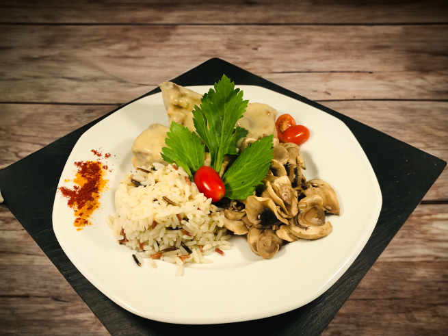 Chez Tradition Sarthoise, la qualité des ingrédients est une priorité. La viande de dinde est sélectionnée auprès d’éleveurs locaux, garantissant fraîcheur et traçabilité. La sauce est cuisinée avec des champignons savoureux et des produits frais pour préserver toutes les saveurs. Chaque plat reflète un engagement fort pour une cuisine sincère et respectueuse du produit.