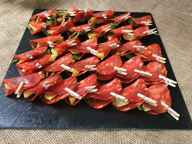 Les chips de chorizo au poulet de Loué sont l’une des spécialités uniques élaborées par votre artisan traiteur Tradition Sarthoise. Cette création culinaire, qui marie parfaitement le goût intense du chorizo et la tendreté du poulet, est idéale pour les apéritifs entre amis ou les événements de famille. Le poulet de Loué, réputé pour sa qualité et son élevage en plein air, se prête merveilleusement à cette recette, tandis que le chorizo artisanal ajoute une touche de piquant subtile et savoureuse.