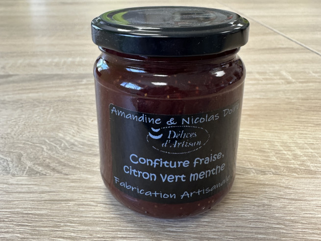 Laissez-vous séduire par la fraîcheur et l'originalité de la Confiture fraise citron vert menthe Délices d'Artisan. Née de la passion d'un artisan pâtissier en Sarthe, cette création sublime le goût authentique des fruits cueillis à maturité. Chaque pot renferme un savoir-faire local, une recette préparée avec soin pour préserver la saveur véritable des ingrédients de notre terroir. C'est une invitation à redécouvrir le plaisir d'une confiture faite maison, où la qualité prime pour une expérience gustative inoubliable.