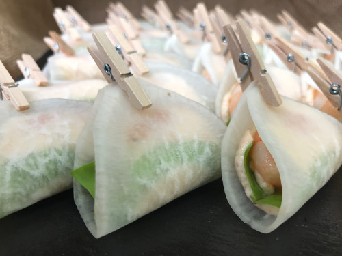 Au cœur de notre démarche se trouve un engagement indéfectible pour la qualité. Chaque gamba est le fruit d’une sélection rigoureuse, choisie pour sa chair ferme et son goût délicat. Le radis blanc, quant à lui, est un produit local qui apporte son croquant inimitable. Tout est fait maison, dans notre atelier, où nous préparons nos créations en petites quantités pour une fraîcheur garantie. Cette maîtrise artisanale nous permet de préserver l'authenticité du goût de chaque ingrédient. Notre passion pour la production locale et la fabrication artisanale ne s'arrête pas là. Elle se retrouve dans chaque produit que nous proposons, de notre charcuterie artisanale jusqu'à nos plats faits maison, souvent élaborés avec de la viande de qualité fermière ou issue de filières d’excellence comme le produit Label Rouge.