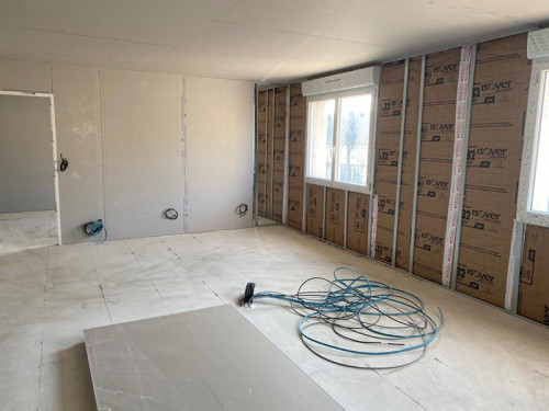 Les travaux de votre boucherie charcuterie traiteur continuent au 35 Place de l'Eglise ! L'étage, avec réserves, salle de pause et bureaux, a déjà ses cloisons. Les ouvertures de la boutique sont prêtes, maintenant place aux fondations des laboratoires boucherie charcuterie et traiteur.