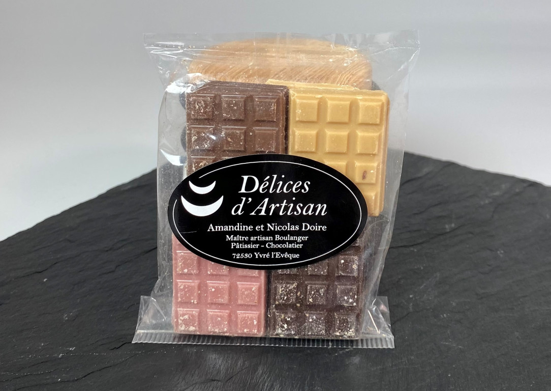 Laissez-vous séduire par les Mini tablettes chocolat assorties Délices d'Artisan, une création exquise née du savoir-faire d'un artisan pâtissier en Sarthe. Chaque bouchée révèle le goût authentique de chocolat fins faits maison, élaborés avec passion à partir d'ingrédients rigoureusement sélectionnés. Cette fabrication chocolats fins artisanale est la garantie d'une qualité supérieure et d'une saveur incomparable, véritable reflet de notre terroir. Ces douceurs sont bien plus que de simples friandises, elles sont une invitation à redécouvrir le plaisir d'un chocolat d'exception.