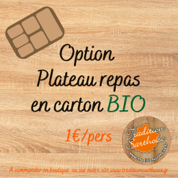 En effet comme dit précédemment, l’ensemble de nos recettes sont réalisées dans notre laboratoire avec des produits de qualité et locaux. Nous prenons à cœur de faire travailler les producteurs et artisans locaux, c’est pourquoi nous leur faisons honneur en réalisant nos plateaux-repas avec leurs délicieux produits. Nous sommes aussi attachés à notre terroir, c’est pourquoi il était pour nous évident de composer un plateau-repas consacré à spécialité culinaire de la Sarthe.
