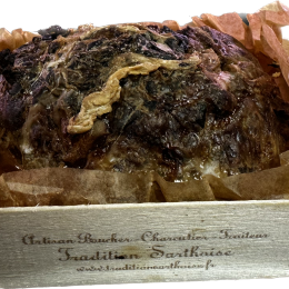 Associant la tradition charcutière et viticole, la terrine de pâté de campagne au Jasnières marie le porc de qualité avec le vin blanc sec Jasnières. Cette fusion élève la terrine à un niveau supérieur, offrant une expérience raffinée et équilibrée.