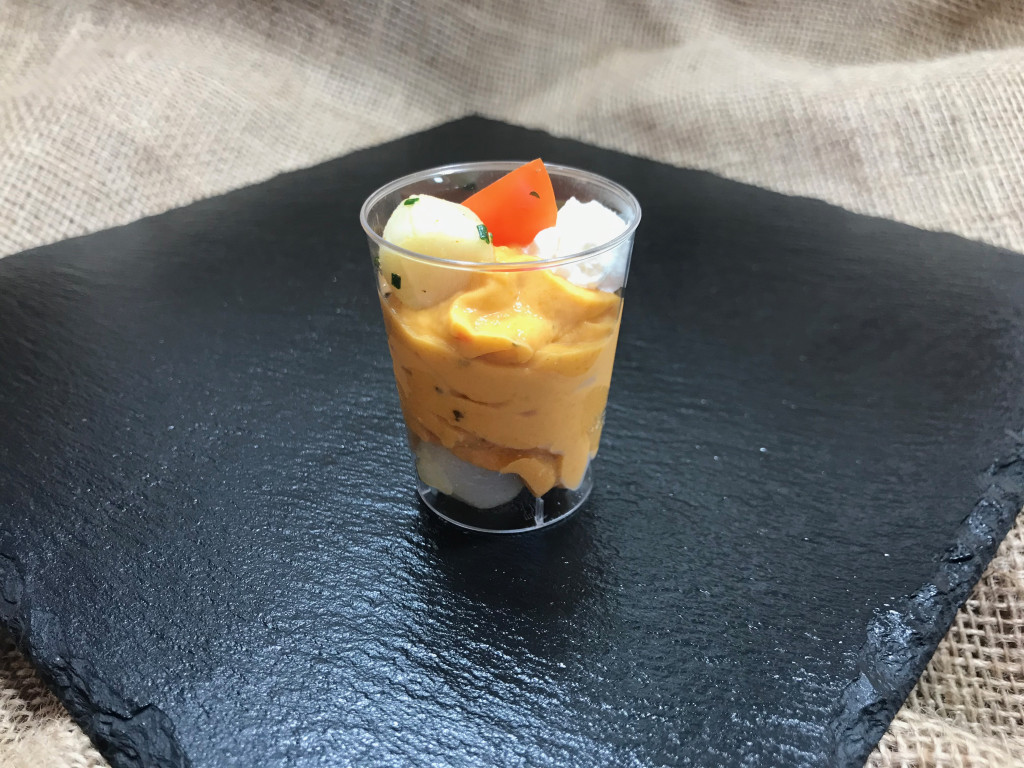 Chaque verrine est préparée sur place, en petites quantités, pour garantir la fraîcheur et le respect des produits. Ce travail minutieux, symbole d’une fabrication artisanale authentique, assure un équilibre parfait entre tradition et créativité. Ces produits locaux s’inscrivent dans une démarche de production locale et de respect du cycle naturel des saisons. En bouche, la texture onctueuse des st jacques s’accorde à la douceur des légumes, pour un résultat d’une justesse rare.