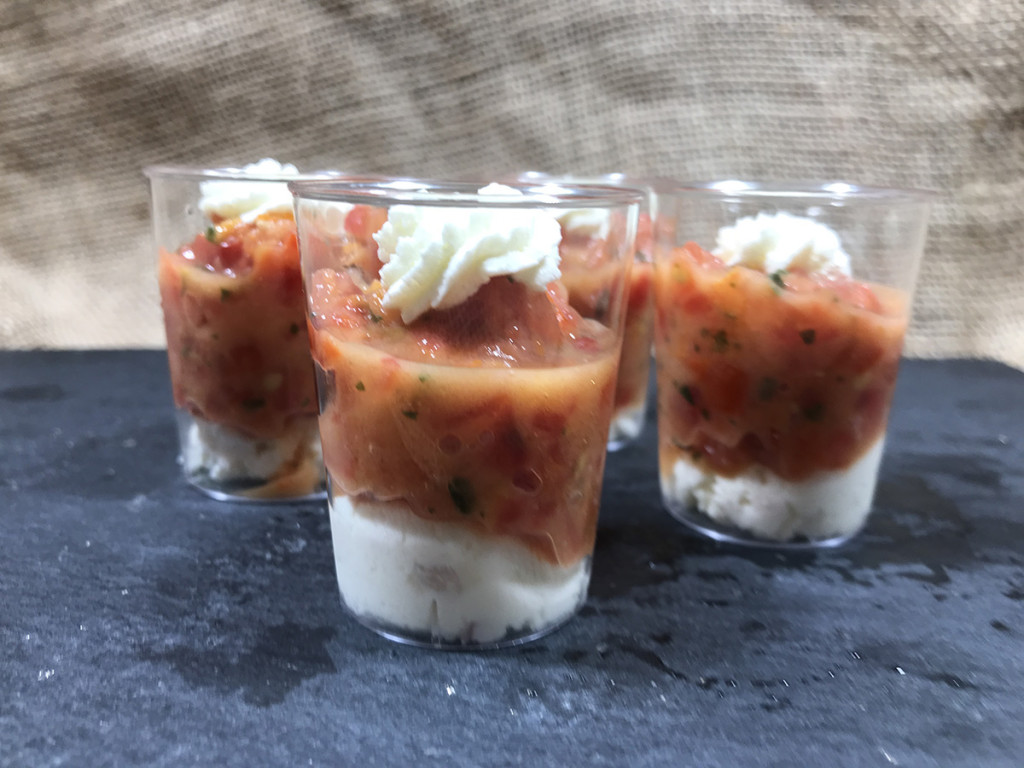 imaginez une verrine délicatement dressée, où la pulpe rouge vif de la tomate rencontre la blancheur veloutée d’un fromage frais fermier. sous la lumière, les reflets scintillent, promesse d’un instant gourmand où le savoir-faire sarthois se mêle à la simplicité d’une recette traditionnelle. dès la première cuillère, la fraîcheur végétale éclate, relevée par la douceur lactée du fromage et l’onctuosité d’une texture fondante. ce mariage savoureux, né d’une fabrication artisanale, incarne l’art de l’apéritif à la sarthoise : convivial, généreux et authentique.